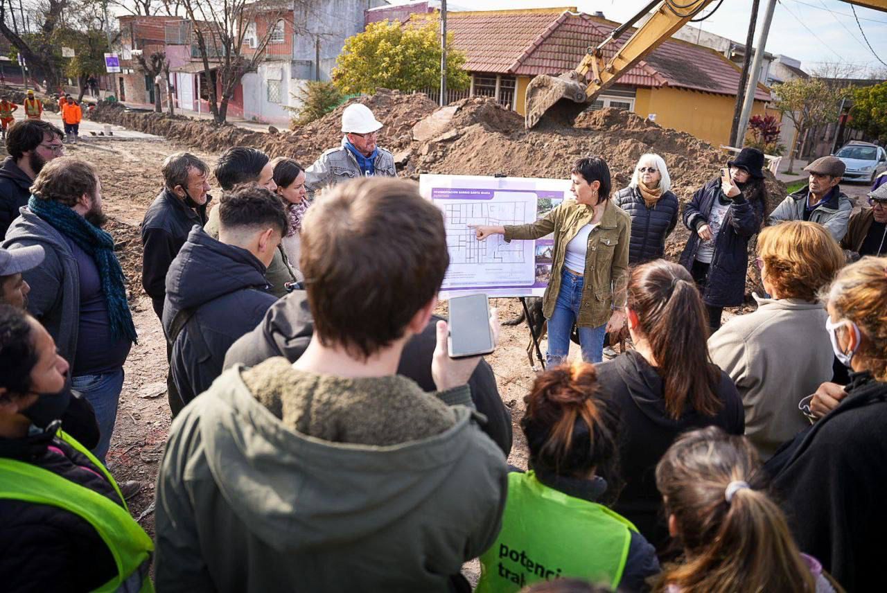 Mayra Mendoza estuvo en el barrio Iapi Santa María donde supervisó la pavimentación de 30 cuadras, los trabajos de refacción y puesta en valor realizados en la Escuela Técnica 8, las obras de ampliación de los talleres y la construcción del Jardín de Infantes Bernal Oeste, además de compartir un encuentro con vecinos y vecinas del lugar.