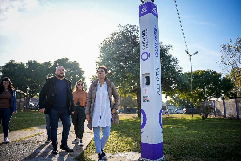 Mayra Mendoza presentó dos nuevos tótems de seguridad emplazados en el Parque de la Ciudad, en bulevar Indio Gómez y Smith, de Quilmes Oeste, lo cual se enmarca en el fortalecimiento de las tareas de prevención contra el delito y protección de la comunidad que se vienen llevando adelante en la Comuna.