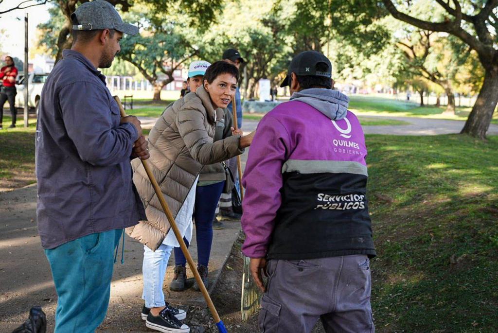 La Jefa comunal supervisó junto al secretario de Seguridad y Ordenamiento Urbano comunal, Gaspar De Stéfano, el funcionamiento de los tótems, que se suman a las 10 cámaras de seguridad que tiene el Parque de la Ciudad. Luego dialogó con vecinos y vecinas, y también saludó a quienes se encontraban trabajando en un gazebo de la campaña Sumate a Cuidar Quilmes, la cual llama a la población interesada a formar parte de la Policía.