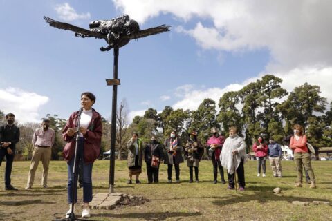 En el acto organizado por la Dirección de Pueblos Originarios del Municipio, se descubrió la placa de la escultura realizada en honor a la mujer indígena desaparecida (la imagen de un cóndor rescatando a una mujer indígena), con la leyenda «Homenaje a la mujer originaria desaparecida 1976-1983».