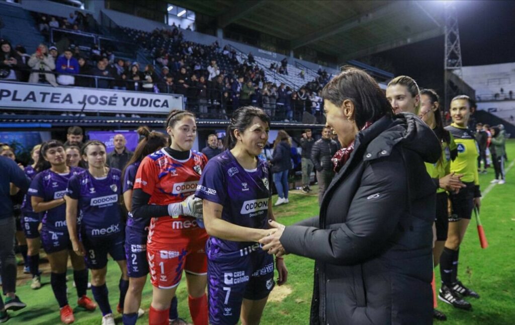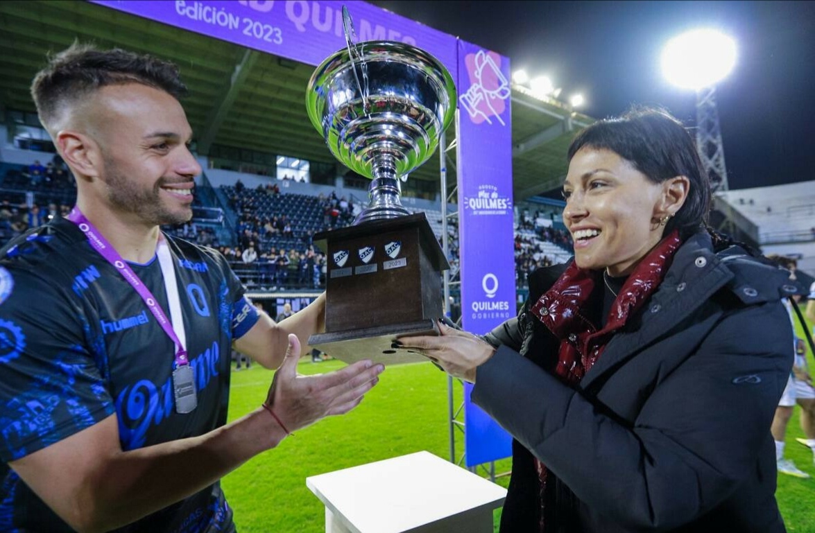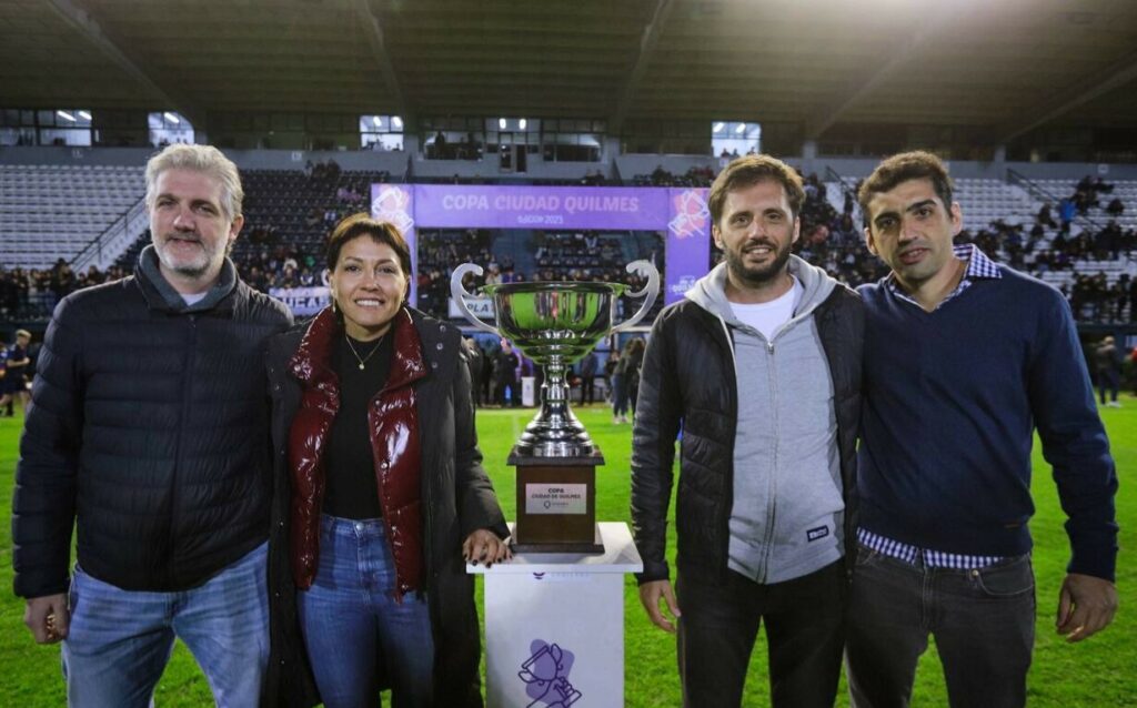 La Jefa comunal estuvo este martes en el desarrollo de una nueva edición de la Copa Ciudad de Quilmes, con los partidos de fútbol que disputaron los equipos masculinos y femeninos del Quilmes Atlético Club (QAC) y el Club Atlético Argentino de Quilmes (AQ) en el Estadio Centenario, en el marco del 357º aniversario del distrito.