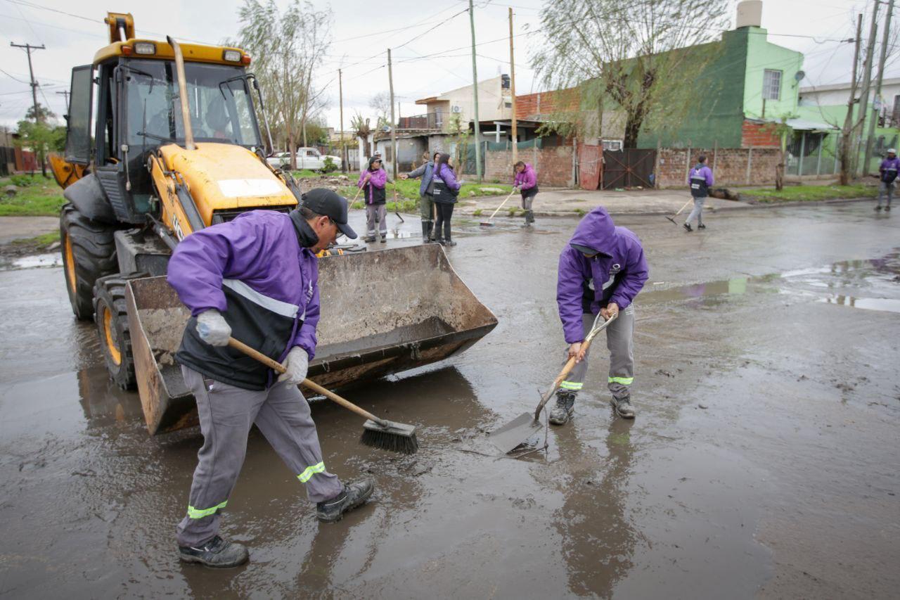 En total, centenares de trabajadores del área de Servicios Públicos y del programa Potenciar Trabajo, equipados con maquinaria pesada, retropalas y camiones volcadores, realizaron tareas de limpieza en la calzada, recolección de residuos, trabajos de zanjeo y desmalezamiento en los diferentes barrios, como Villa La Florida, Solano, La Matera, La Sarita, Kolynos, Los Eucaliptus y en una amplia zona de Bernal Oeste, entre otros.