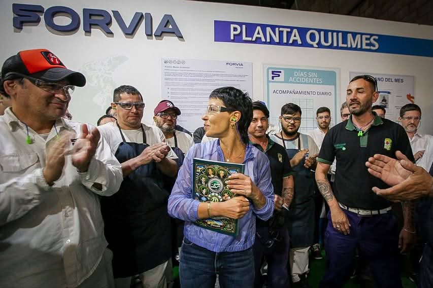 La intendente Mayra Mendoza recorrió la planta de autopartes Forvia, en el Parque Industrial, en Bernal Oeste, donde dialogó con autoridades de la planta, trabajadores y representantes del Sindicato de Mecánicos y Afines del Transporte Automotor (SMATA).