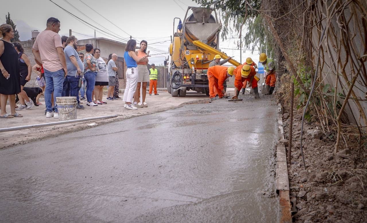 La obra comprende las diez cuadras de pavimento que faltaban en el barrio, que eran calles de tierra o tenían un mejorado en mal estado. Se está haciendo un pavimento de hormigón con cordón cuneta y también, como complemento, se están construyendo las veredas en todo el tramo.