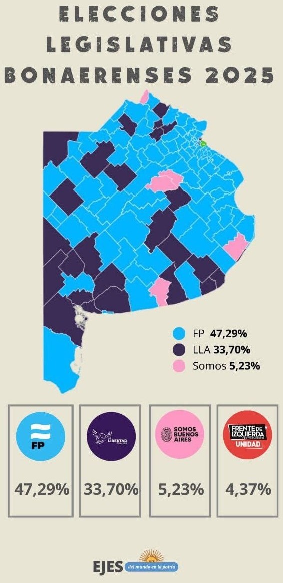 “Hoy, el pueblo de la provincia habló fuerte y claro. A la propuesta de Milei de ‘Kirchnerismo nunca más’, la respuesta de la gente en las urnas fue contundente: ‘Kirchnerismo más que nunca, para el pueblo peronismo siempre’. Porque no se puede borrar la historia de conquistas de nuestro movimiento, ni se puede frenar la fuerza de un pueblo que lucha”
