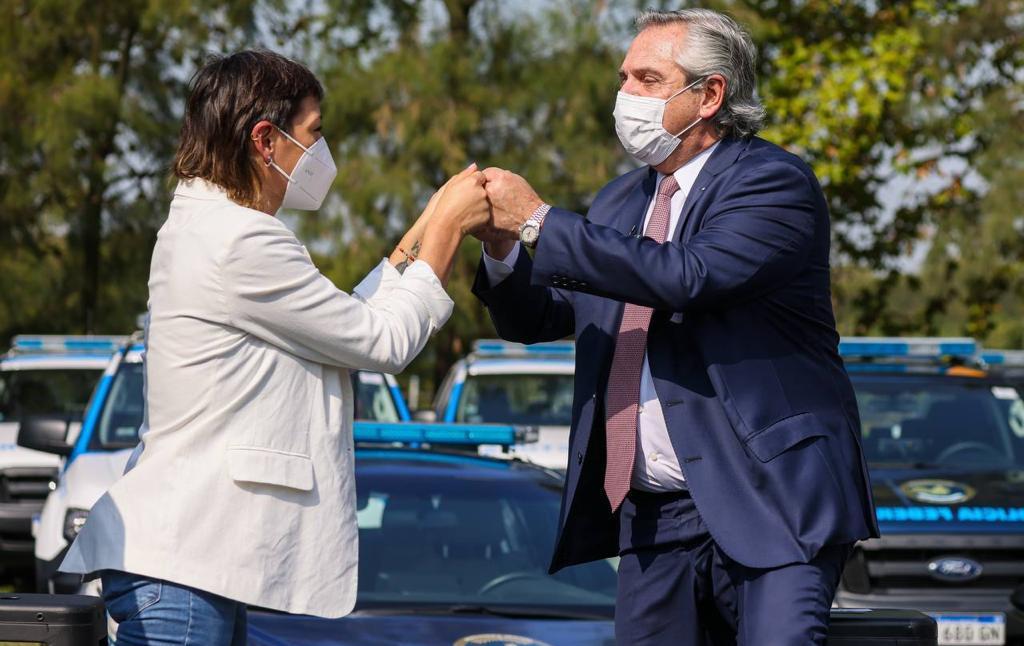 Acompañado por la ministra Sabina Frederic, Fernández entregó 150 nuevos vehículos que fueron adquiridos con una inversión de más de 582,8 millones de pesos para fortalecer las capacidades operativas y logísticas de las cuatro fuerzas federales en todo el país.
