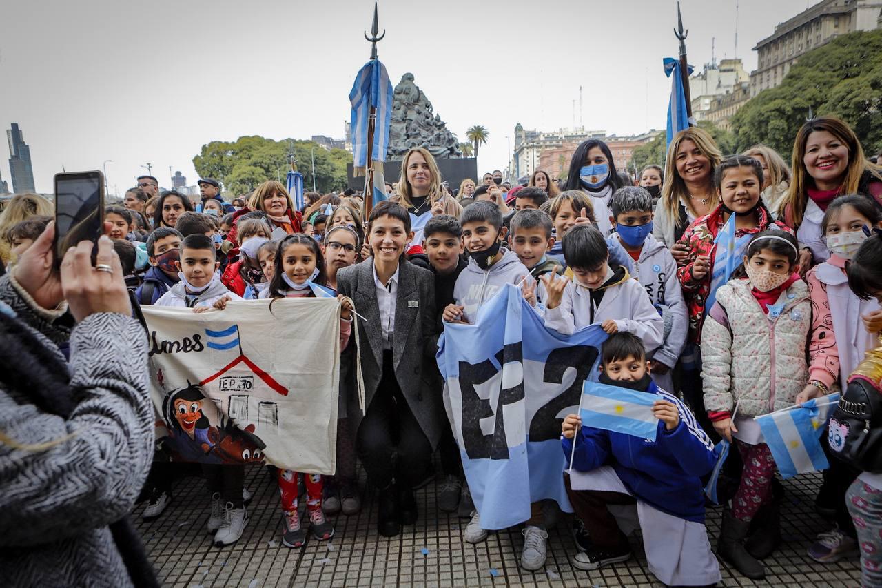 «Comenzamos el Día de la Bandera acompañando a alumnos y alumnas de 4º año de las Escuelas Primarias 2, 60, 70, 71 y 72, en el acto de Promesa de Lealtad a la bandera, en el CCK, encabezado por el presidente Alberto Fernández. Es un orgullo, como Intendenta, poder estar con ustedes en este día tan importante para nuestra patria»