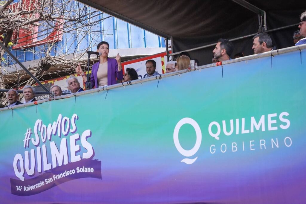La intendente encabezó este domingo el desfile cívico, militar y tradicionalista por el 74º aniversario de San Francisco Solano, que tuvo lugar en la avenida 844 entre 894 y 897, donde frente a miles de vecinos y vecinas hizo un repaso de las políticas desarrolladas en la zona durante los últimos cuatro años y resaltó la importancia de continuar por el mismo rumbo para mejorar la vida de los quilmeños y quilmeñas.