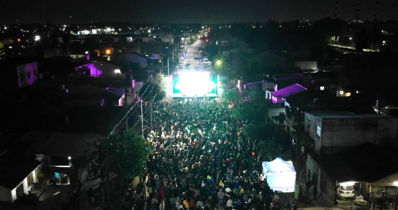 Mayra Mendoza participó este domingo 25 junto a miles de vecinas y vecinos, de una nueva edición del festival Somos Quilmes, en el marco de los festejos por el 71º aniversario del barrio La Paz, en el escenario montado en avenida Santa Fe y calle 894, que tuvo un cierre a pura música con las actuaciones de Bruno Arias y un final con mucha cumbia santafesina con la presentación de Los del Fuego.