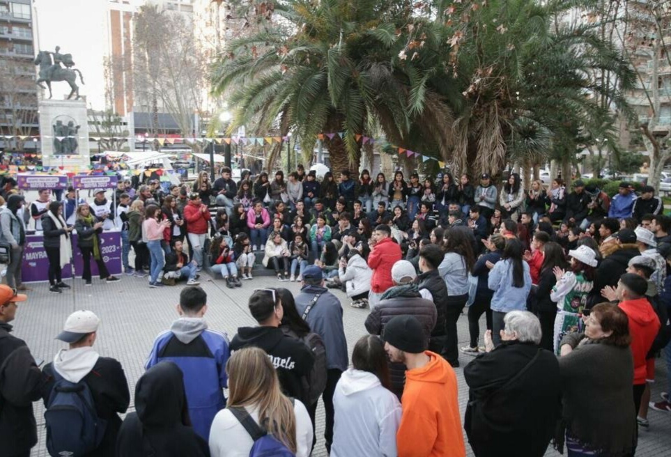 Mayra Mendoza compartió este sábado junto a cientos de jóvenes el festival de cierre de vacaciones de invierno en la plaza San Martín, en Mitre y Rivadavia, que contó con música, baile, radio abierta, foodtrucks y feria de emprendedores.