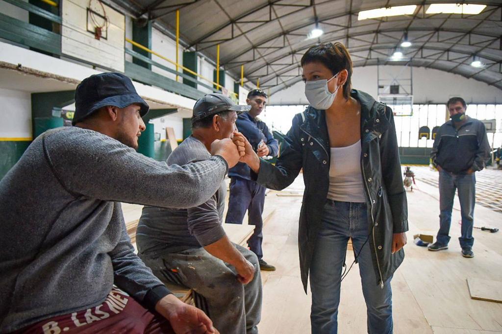 La Jefa comunal Mayra Mendoza recorrió las obras de colocación del piso de parquet en el gimnasio del primer piso del Club Social Deportivo y Cultural Moreno, al 72 de esa calle, en el barrio Villa Las Rosas. Es otra de las instituciones del distrito que fue beneficiada con el Programa de Fortalecimiento a Clubes de Barrio y Entidades de Bien Público y el Programa Clubes en Obra.