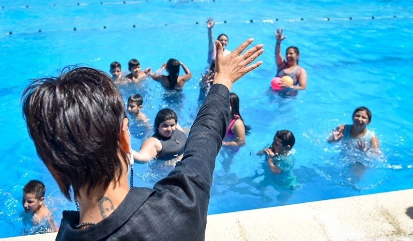 «En el distrito hay más de 45 sedes y participan alrededor de 6 mil chicos, mientras que en la provincia hay 2.500 sedes, participan 130 mil chicos y está en crecimiento. En la jornada de hoy fue muy emocionante ver la alegría de los pibes en la pileta».