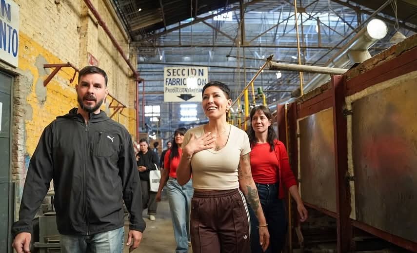 La intendenta de Quilmes, Mayra Mendoza, junto a la secretaria de Desarrollo Urbano y Obra Pública, y candidata a 1ª Concejala por Fuerza Patria Quilmes, Ceci Soler, visitaron este martes la Cristalería Cooperativa «El Progreso» LTDA, ubicada en Carbonari 995, en Ezpeleta, donde dialogaron con sus directivos y trabajadores acerca de la actualidad social y económica del país.