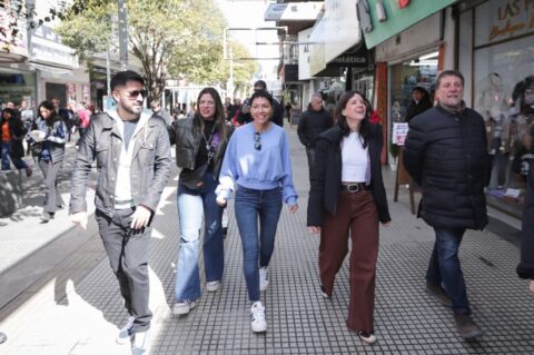 La intendente Mayra Mendoza, junto a la secretaria de Desarrollo Urbano y Obra Pública y candidata a 1ª concejala por Fuerza Patria, Ceci Soler, caminaron este jueves por la peatonal Rivadavia, donde dialogaron con comerciantes y vecinos, y reconocieron a locales tradicionales.