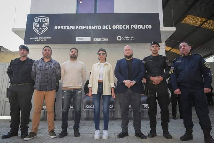 «Estamos presentando el nuevo cuerpo de ROP que es una fuerza de UTOI, de la Policía Bonaerense, para restablecimiento del orden público. Quilmes va a tener 150 efectivos a disposición para el trabajo articulado que hoy desarrollan los efectivos policiales en nuestro distrito, con la secretaria de Seguridad y Ordenamiento Urbano del Municipio de Quilmes. Esto es más prevención para poder mejorar la calidad de vida de nuestros vecinos y de nuestras vecinas»