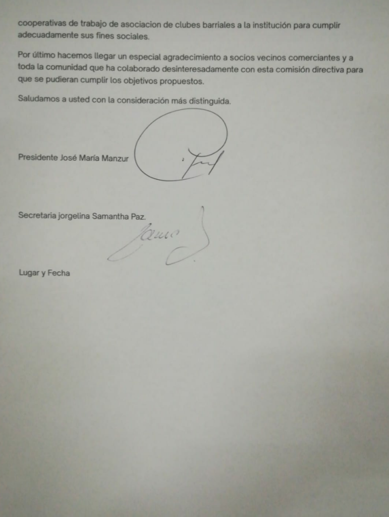 Aprobadas las rendiciones, algunos miembros de comisión y socios comunes firmaron el Acta.