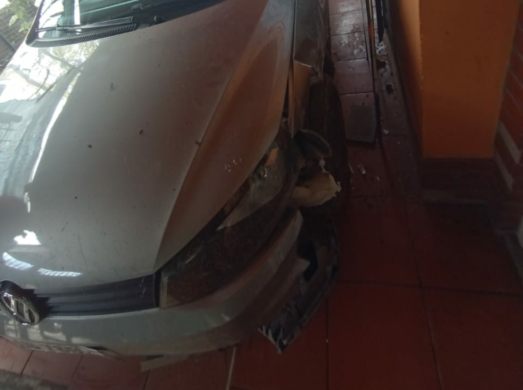 Continuando con los delitos, intentan cometer otro en 880, fallido, escapando por la misma calle hacia Donato Alvarez. Al llegar a 889 y 827, personal policial de la Comisaría 4a de Solano, registra la huida y comienza una persecución, apoyada por personal del Comando de Patrullas, que termina en el choque contra la vivienda, que según trascendió, es propiedad de la hija de la ex concejal villordista Mary Lobo.
