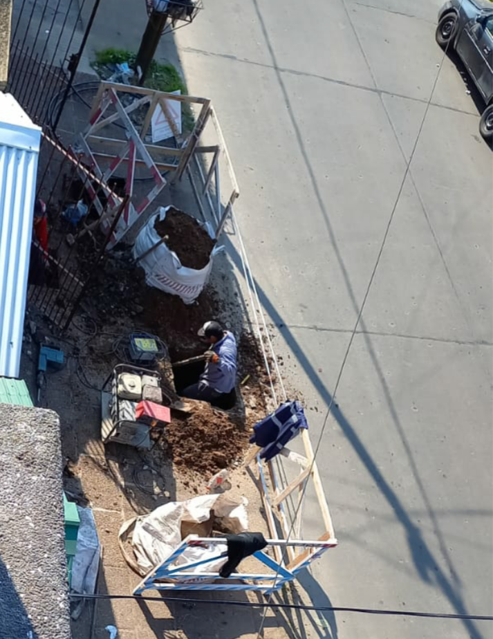 Parece que la empresa de Aguas y Saneamiento se encariñó con la zona. Desde hace meses, trabaja en el cambio de cañerías, lo que implicó la rotura del pavimento y reducción de calzada en Mitre desde Primera Junta hacia el sur. Esta semana estaba ya resuelto; las veredas rotas por el arreglo, reparadas, de una manera no muy satisfactoria, pero se hizo. Eso sí, olvidaron conectar a un domicilio. Así que ahí están hoy, dale pico y pala otra vez, sobre las baldosas nuevas. No se quejen, che, al menos vinieron… otros están colgados todavía.
