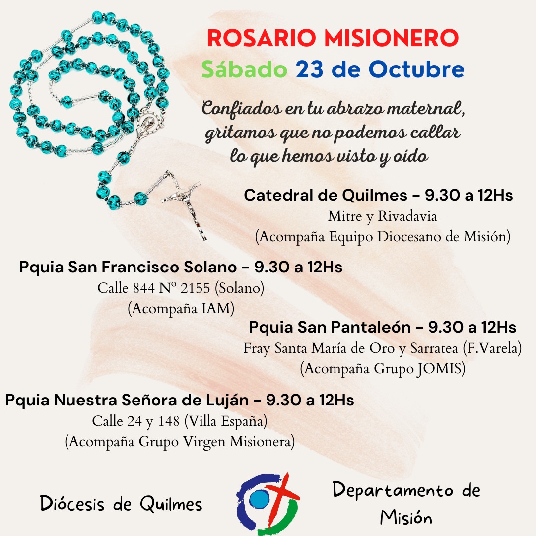 El Rosario Misionero se reza en octubre con la finalidad de poner en manos de la Virgen María la evangelización en los cinco continentes.