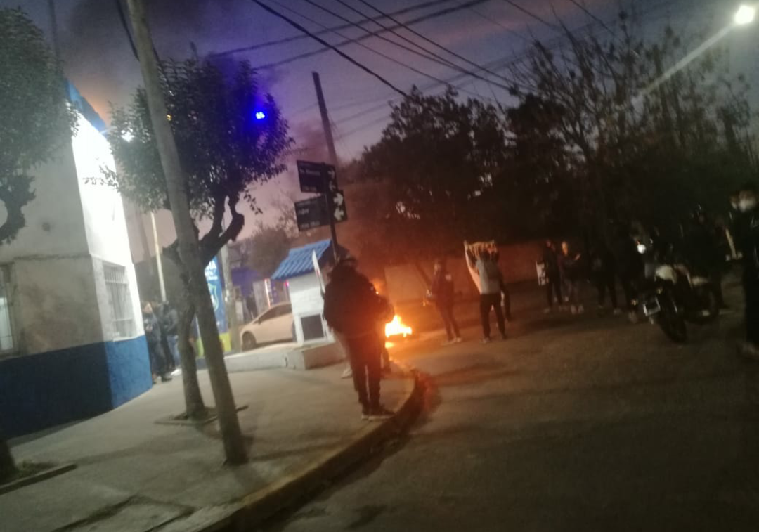 Mientras, en el frente de la dependencia están realizando los allegados un corte y quema de neumáticos.