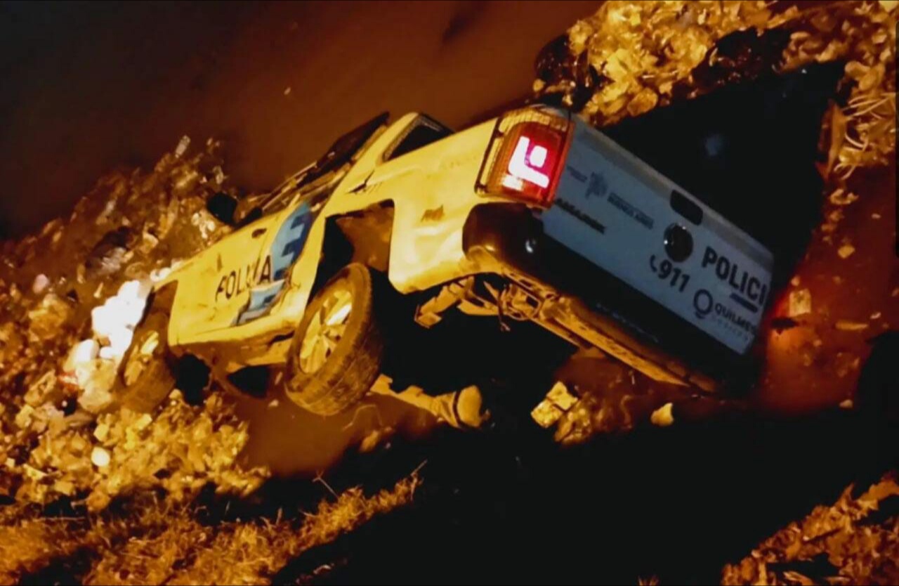 En circunstancias no claras por el momento, un grupo de vecinos empujó al patrullero al arroyo, estaba estacionado cerca, pero permanecía una mujer policía dentro. Ante el hecho inusitado y confuso, fue rescatada e intervino la Gendarmería.