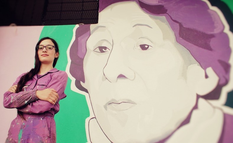 “Las mujeres por siglos fuimos excluidas de la historia. Muchos proyectos de arte y descubrimientos científicos nos fueron arrebatados por varones. Con mis murales busco recuperar la memoria de mujeres que han cambiado el rumbo de la historia en nuestro país. Yolanda fue doctora en Química, especializada en Toxicología, por eso Perón la eligió para el cargo. Vio en ella el potencial para que nos guíe en justicia ambiental, ya que para que haya justicia social es necesario que los trabajadores y trabajadoras accedan a un ambiente sano”