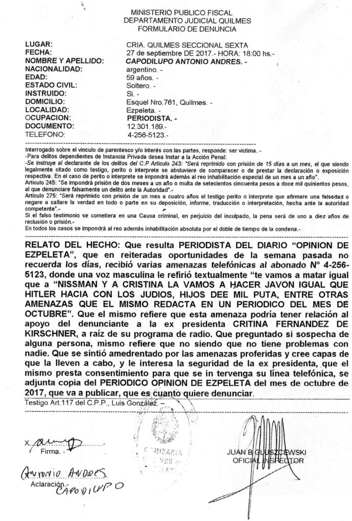 La denuncia y la tapa de Opinión