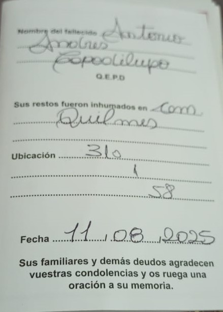 Su cuerpo descansa en la ubicación 310 -1- 58 del Cementerio de Ezpeleta, la localidad por la que siempre levantó la voz.