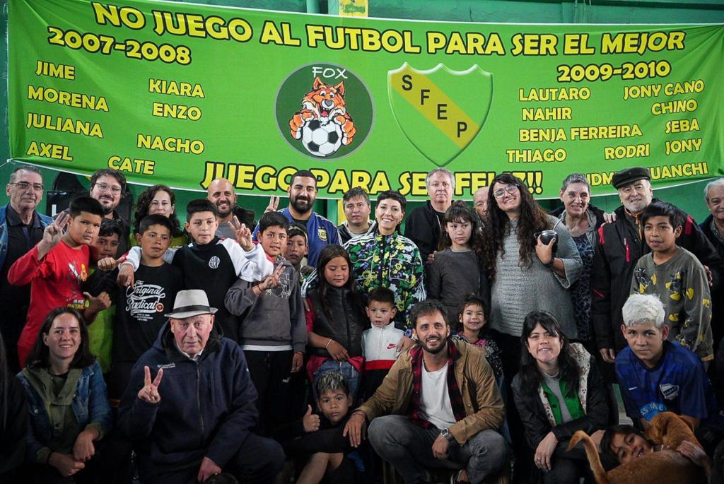 También aprovechó la visita para saludar a los chicos y chicas, de diferentes edades, que estaban jugando un partido de fútbol mixto en la cancha de la sociedad de fomento.