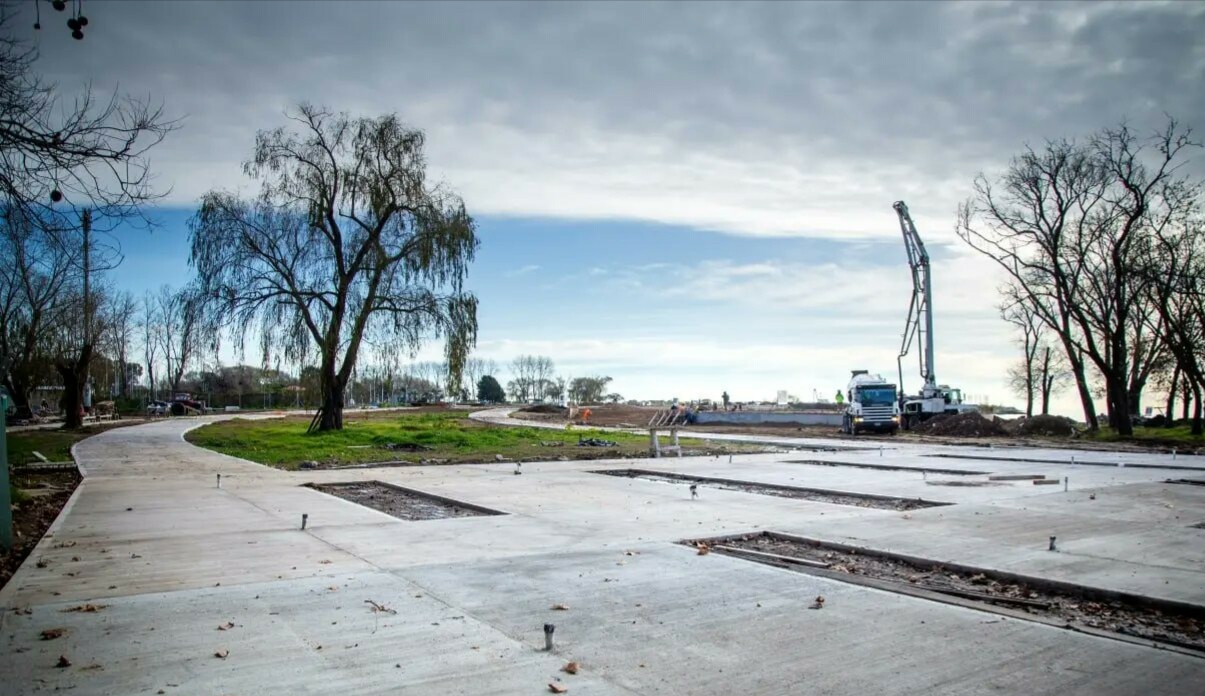 Ya se ejecutaron casi la totalidad de los senderos de hormigón peinado y la bicisenda está terminada sobre la cara del Club Náutico, mientras que las fundaciones de barandas metálicas perimetrales tienen un avance físico de el 50%. También se completó el solado intertrabado tanto en el patio de la tercera edad como en el de ping-pong, y gran parte de los senderos internos. Los 3 patios para las infancias, patio del ceibo abierto y patio aeróbico están listos, esperando la ejecución del solado antigolpes y la instalación de mobiliario, juegos, equipamiento y luminarias.