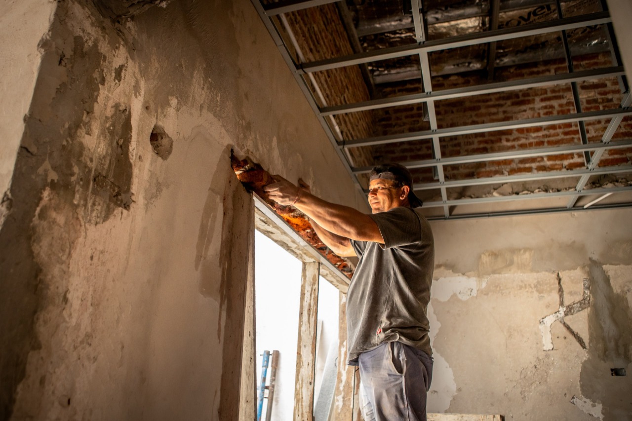 Además, entre los trabajos finalizados se encuentran la demolición y la colocación de la cubierta, también se terminó el muro medianero con la iglesia, y se avanzó con la instalación sanitaria y revoques.