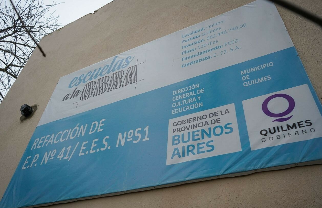 Avanzan las obras de puesta en valor, ampliación y refacción de la Escuela Primaria (EP) Nº 41 y de la Escuela Secundaria (ES) Nº 51, que comparten el edificio Beruti 3599, en Quilmes Oeste, y que son parte del programa provincial «Escuelas a la Obra».