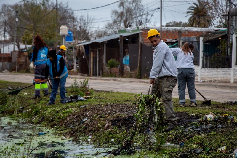 Para la ejecución de las tareas fue necesaria la utilización de máquinas retropala, mini-retroexcavadora, minipala cargadora, camiones volcadores y camiones roll-off. Estas labores, que se realizan en forma periódica, permiten el rápido escurrimiento del agua de lluvia, evitando posibles anegamientos en el barrio.