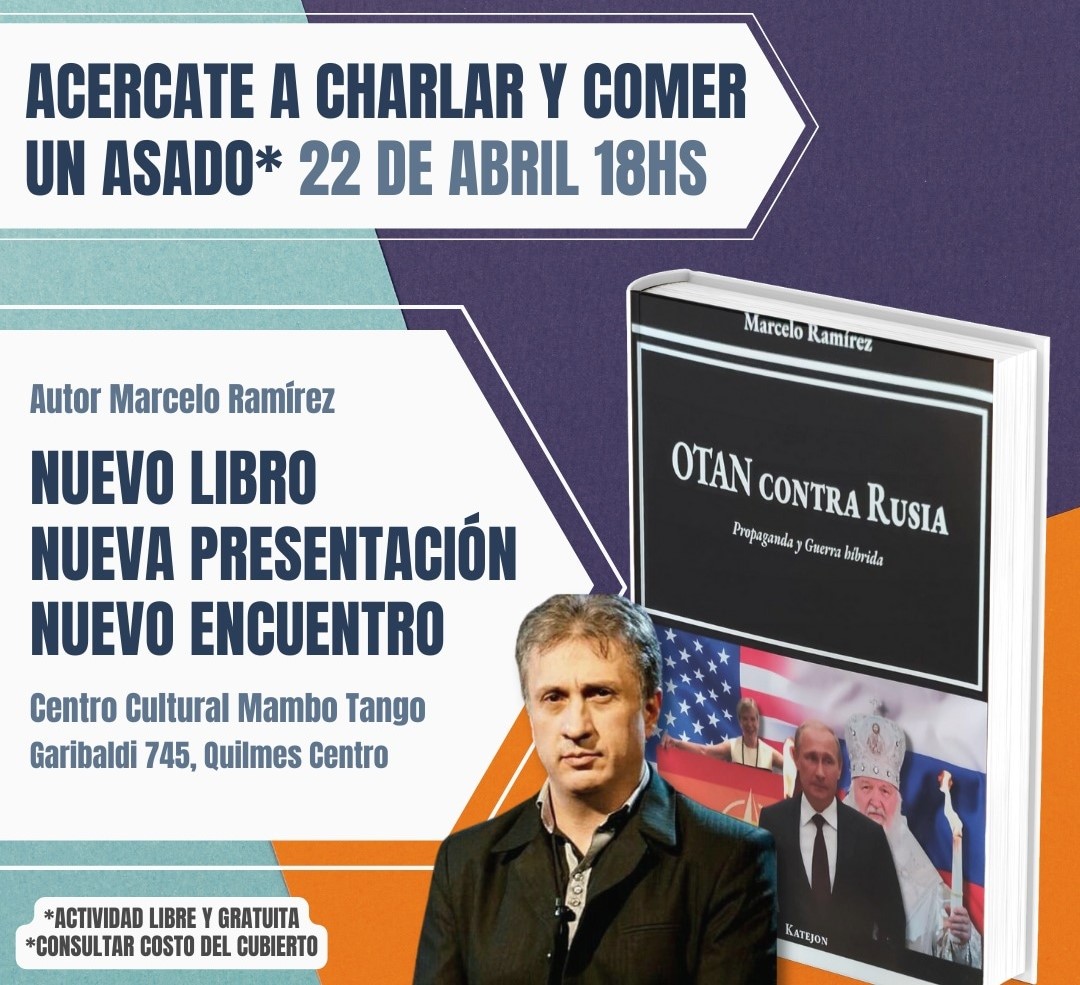 Este sábado 22 de abril desde las 18, recibirán por segunda vez en el Mambo Tango a Marcelo Ramírez, quien vendrá a presentar su nuevo libro «OTAN contra Rusia: Propaganda y Guerra Híbrida«. La charla será gratuita para luego comprar los ejemplares disponibles.