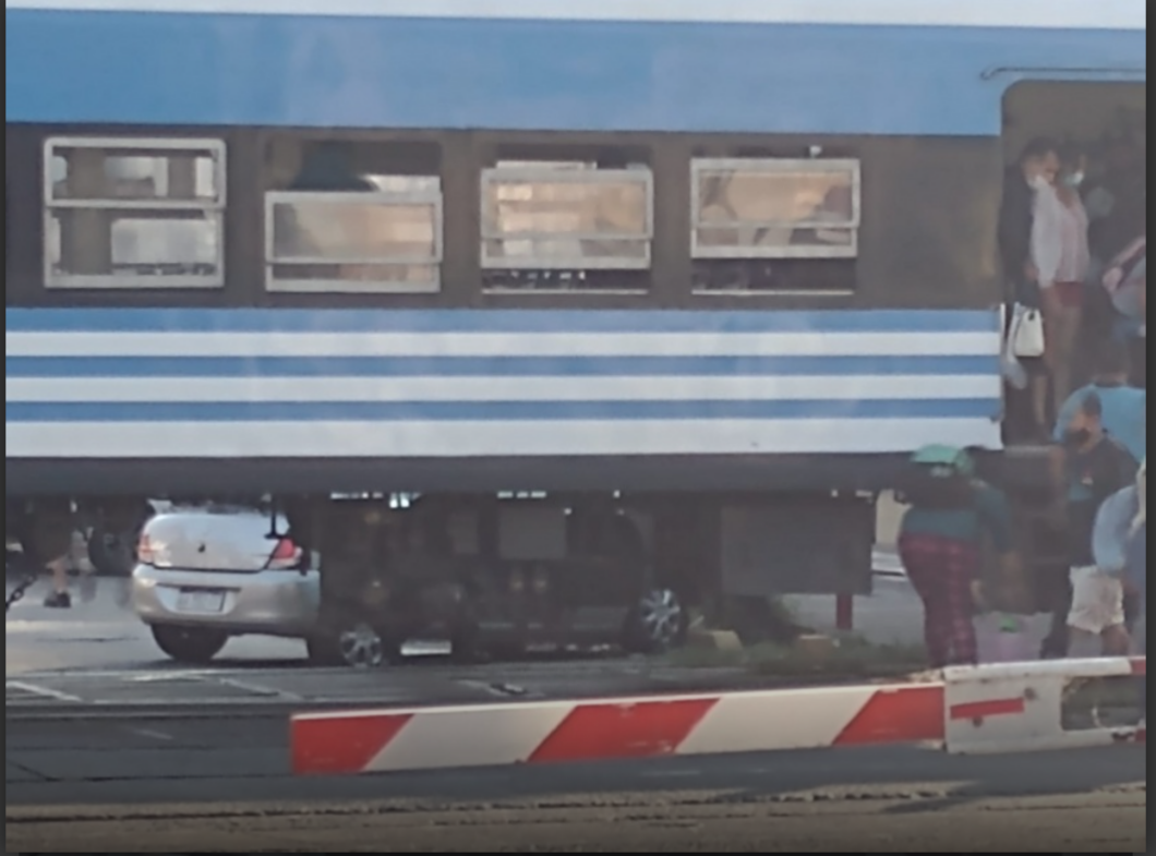 En la mañana de hoy, una persona con su auto quiso cruzar por el paso a nivel de 12 de octubre a pesar de que la barrera se encontraba baja.