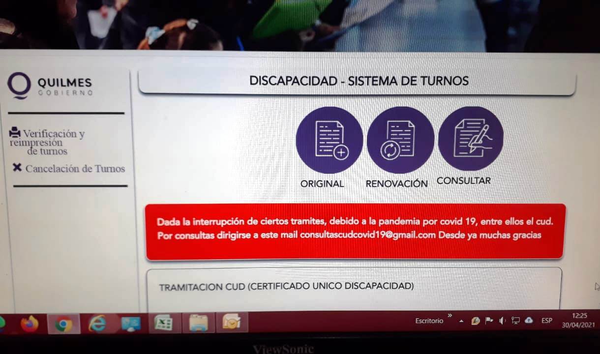 Familiares de personas con capacidades diferentes (pcd) encuentran inconvenientes para consultar la página de Discapacidad del Municipio, aunque lo intenten por Google Chrome, Firefox, etc. ya que para pedir turno para vacunación por COVID deben renovar su Certificado Unico de Discapacidad (CUD).