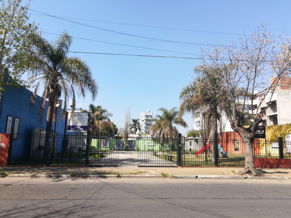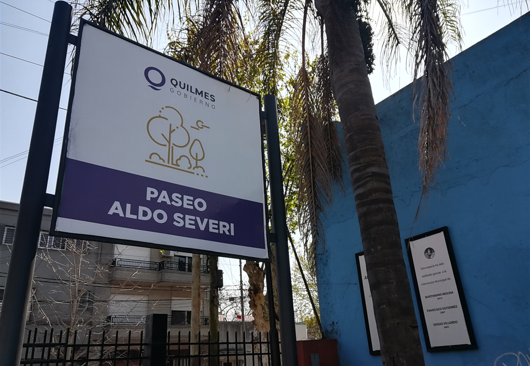 Es un pulmón de manzana en forma de L, entre las calles Guido y Lavalle, que lleva el nombre de Paseo Aldo Severi, en homenaje al artista nacido en junio de 1928 y que falleció en 2005, que asomó a la vida en el barrio de Quinquela, y asentó en Quilmes su amorosa familia y pródiga profesión de artista plástico y profesor.