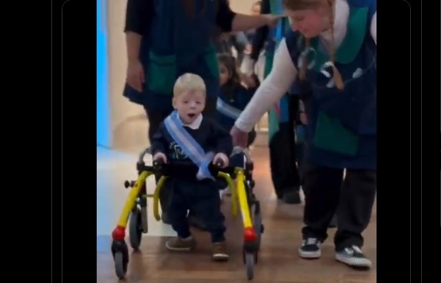 Benjamín (benja_cafiso), es un niño con una enfermedad genética poco frecuente, síndrome de deleción. Acaba de ser elegido escolta de la bandera argentina para un acto en el jardín Acuarela, de Quilmes. Su mamá relató que la institución quiso hacerlo sentir como uno más: