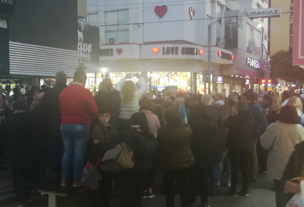 Algunos comerciantes estaban en las puertas de sus locales atentos a una posible intrusión, a la corresponsal de este CIQ no se le permitió subir al umbral de entrada de uno de ropa para poder sacar mejores fotos. Otros, sin embargo, quizá adherentes a la fórmula que se presentaba, se mostraron más agradecidos de tener a la muchedumbre frente a sus negocios.