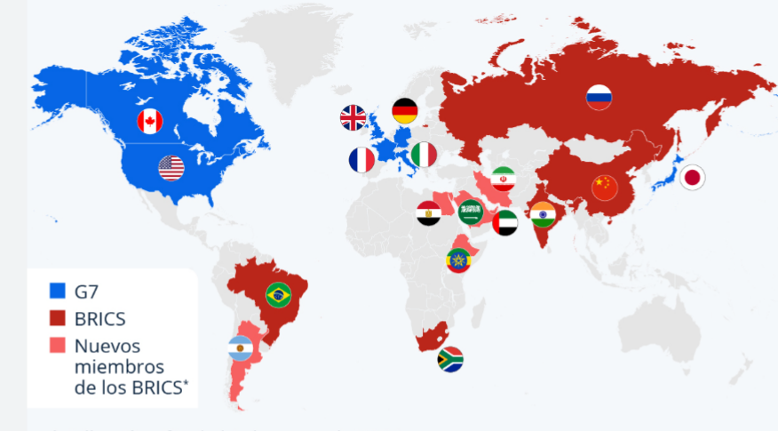 Este BRICS ampliado implica también la posibilidad de coordinación de votos dentro del Fondo Monetario Internacional, obteniendo así un hipotético poder de veto en el caso de que los integrantes del bloque adquirieran una lógica común a la hora de influir en las votaciones del organismo. No obstante, también los BRICS cuentan con un Banco propio que, se ha argumentado, aspira a competir con el FMI como fuente de crédito para países en vías de desarrollo.