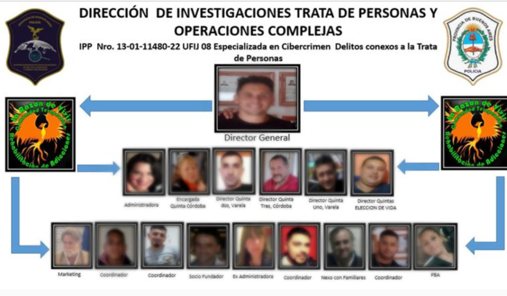 La presente investigación se inició a raíz de la declaración testimonial de 10 víctimas, (masculinos mayores de edad), quienes se presentaron en la Fiscalía interviniente, dando cuenta de la existencia de dos comunidades Terapéuticas en las cuales se brindaría un tratamiento contra las adicciones, llamadas “RAZON DE VIVIR” y «ELECCION DE VIDA», conformada por SIETE (7) Quintas, en las localidades de Virrey del Pino General Rodríguez, La Matanza, Glew y Varela y en la Provincia de Córdoba.