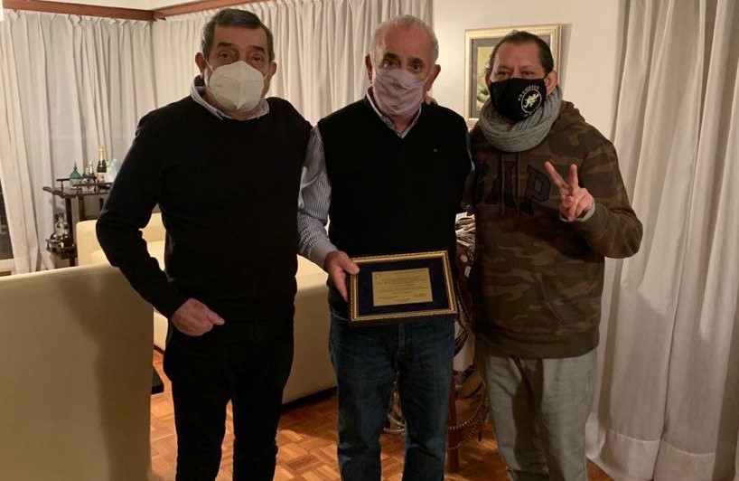 El ex intendente de Quilmes, y ex Presidente de la Nación, Eduardo Oscar Camaño, recibió esta tarde en su domicilio, la visita del vicepresidente del Partido Justicialista de Quilmes, Pedro Pierre, y del congresal nacional Luis Omar Daer, quienes le entregaron una placa en reconocimiento a su trayectoria en el peronismo quilmeño y por su labor como concejal, intendente, diputado provincial y nacional y ex presidente de la República.