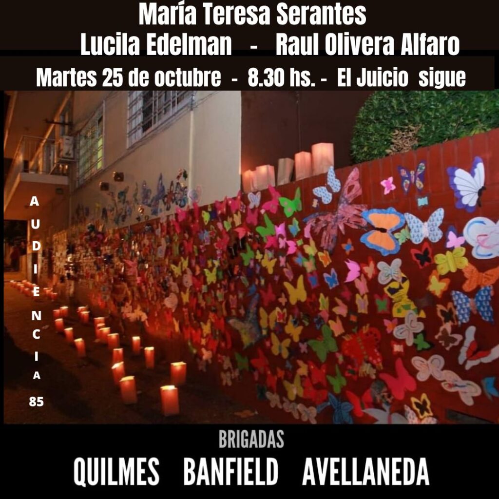 - María Teresa Serantes, secuestrada el 21 de abril de 1978 junto a su pareja Zafiro Illarzén. Ambos permanecieron en el Ex CCD Pozo de Quilmes.