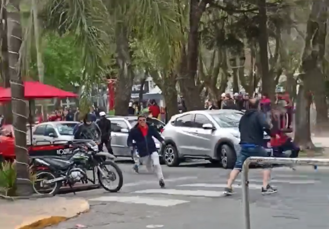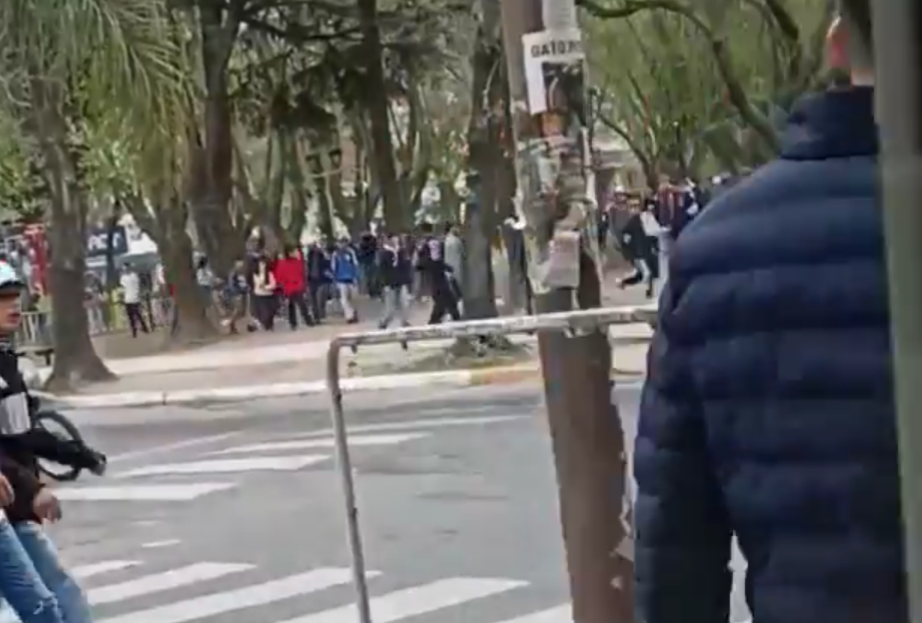 Esta tarde, cerca de las 15 horas, se produjo una feroz pelea entre grupos de estudiantes de distintas escuelas, en la Plaza del Bicentenario, conocida como «Conesa«.