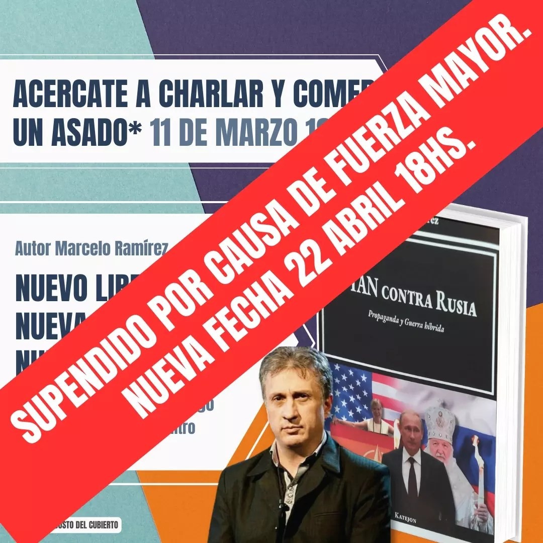 El libro OTAN contra Rusia: Propaganda y Guerra Híbrida, iba a ser presentado este sábado, en la barranca de Quilmes por su autor, Marcelo Ramírez, quien ya había venido al centro cultural Mambo Tango.