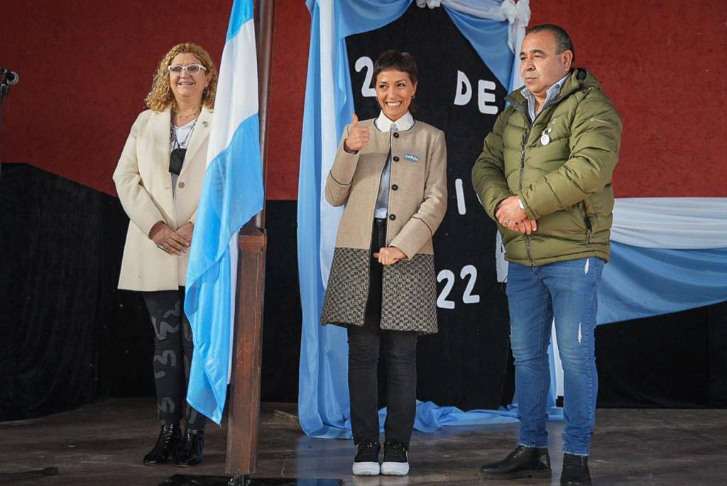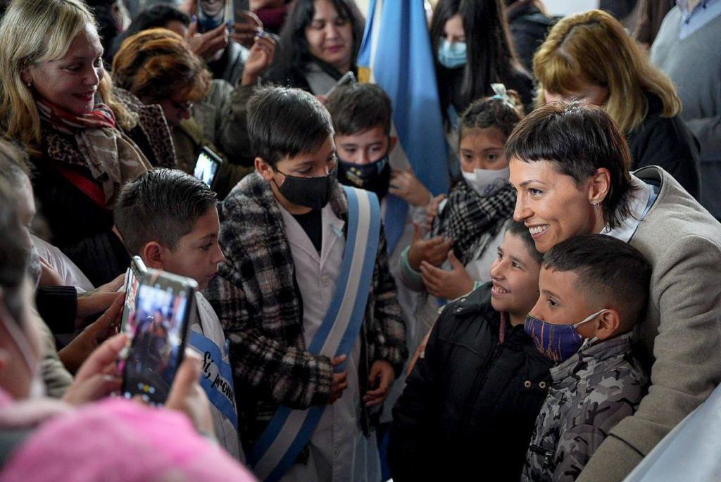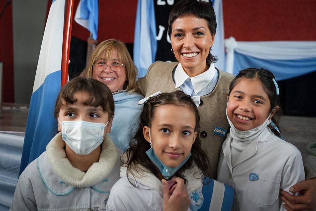«Gracias, Mayra, por recibirnos en este hermoso distrito. Traigo el saludo del profesor (director general de Cultura y Educación de la Provincia) Alberto Sileoni. Hoy es un día muy especial, en las escuelas bonaerenses están prometiendo los chicos y las chicas de 4º año de la Primaria, junto a las familias. Ustedes van a prometer por esta bandera que nos representa y que nos da orgullo. Es un honor hacer la promesa junto a los excombatientes, a 40 años de Malvinas».