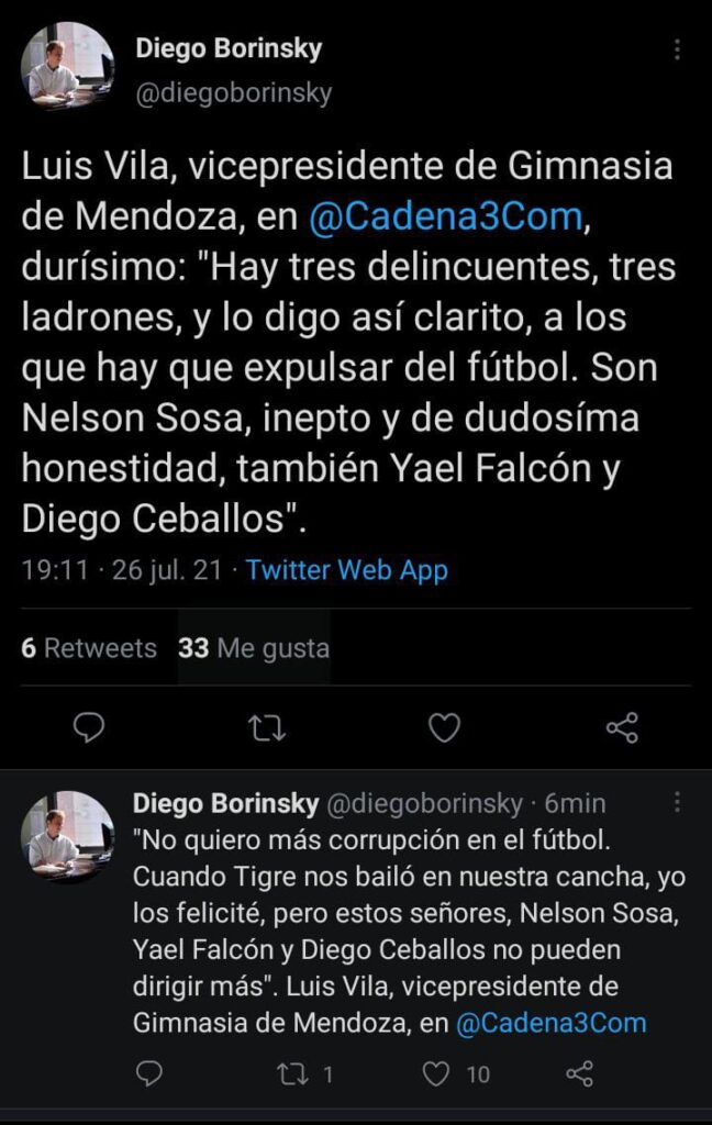 «Hay tres delincuentes, tres ladrones, y lo digo así de clarito, a los que hay que expulsar del fútbol: Nelson Sosa, inepto y de dudosísima honestidad, Yael Falcón Pérez y Diego Ceballos».