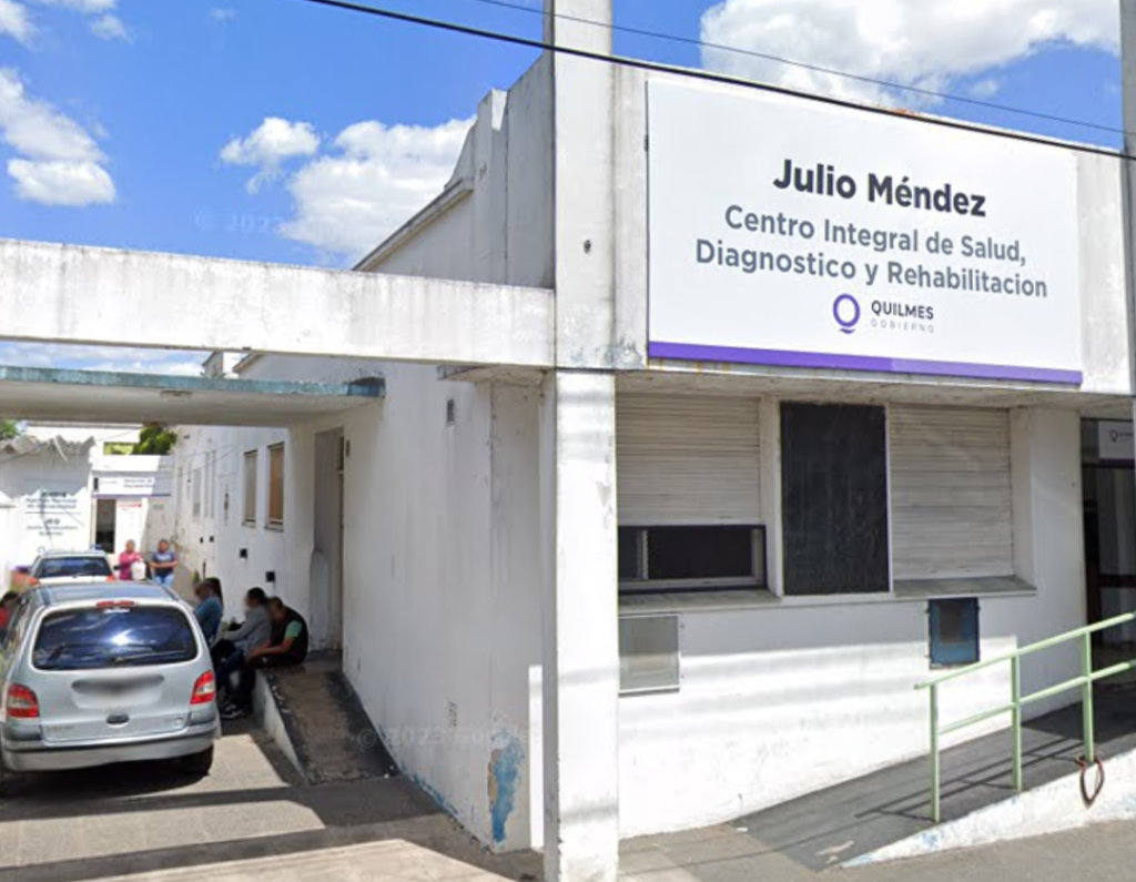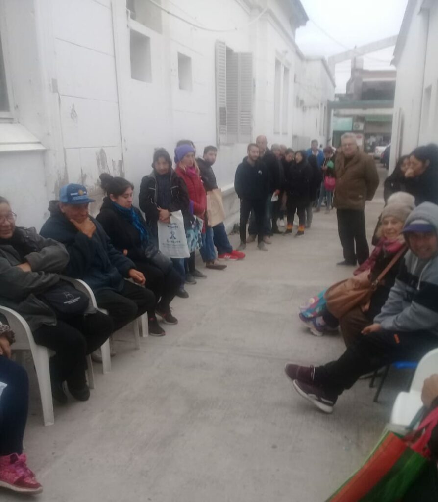 El Centro de Salud Dr. Julio Méndez, de 9 de Julio, Bernal, utiliza como sala de espera un pasillo a la intemperie, por saturación de público en los consultorios.
