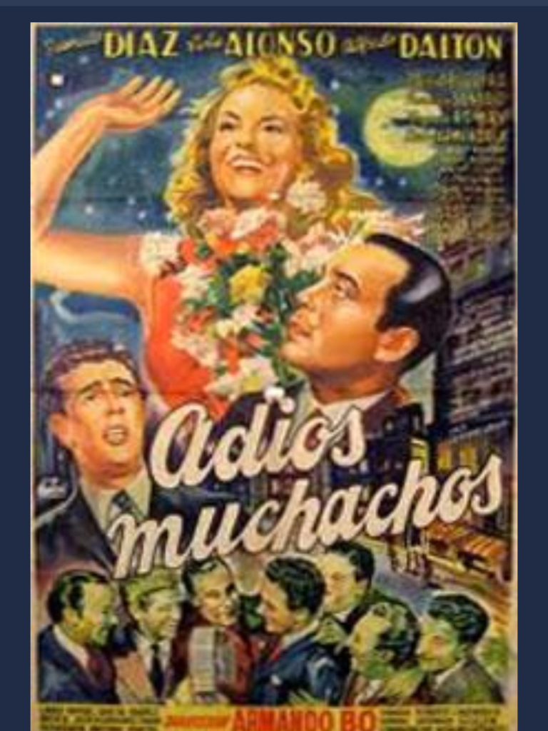 Adiós, muchachos, dirigida por Bo en blanco y negro, a mediados de los ’50, sobre escenarios locales, contó con música de Julio Sanders, pianista nacido en Quilmes.