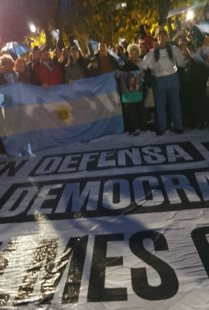 En el marco de las marchas a favor de apoyo a CFK, este viernes desde las 17 se llevó a cabo una convocatoria en la Plaza de las Colectividades, colmada de militantes y vecinos que de acercaron, pese al frío día lluvioso.